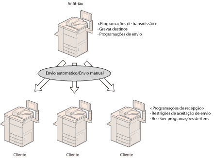 As informações do dispositivo podem ser partilhadas entre máquinas do mesmo modelo. No entanto, algumas informações podem não ser enviadas corretamente, dependendo dos produtos opcionais disponíveis para utilização com esta máquina.