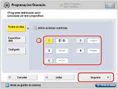 Se não quiser programar o envio automático, selecione [Desligado] → carregue em [OK] → [OK].