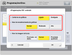 Se aumentar o <Nível de reconhecimento de gráficos>, o volume de dados também aumenta. Recomenda-se que utilize primeiro [Normal] e, se não obtiver os resultados desejados, experimente aumentar o nível de reconhecimento para [Moderado] ou para [Alto].