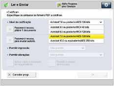 Se quiser selecionar [Acrobat 9.0 ou equivalente/AES 256 bits] em vez de [Acrobat 10.0 ou equivalente/AES 256 bits], pode alterar o nível de codificação selecionado seguindo os procedimentos indicados abaixo.