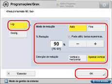 A imagem é reduzida em função do rácio de redução programado em <% Redução>.