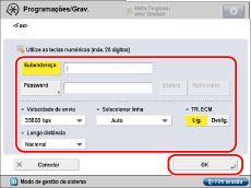 Carregue em [Confirmar] → reintroduza a password do destinatário para confirmação → carregue em [OK].