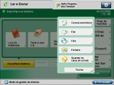 Se programar <Ativar fax na função Ler e Enviar> para 'Ligado', a função Fax aparece em [Ler e Enviar].