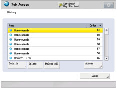 Select [Name] or [Order] to sort the URL history list in ascending or descending order.