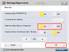 Even when this restriction is enabled, the device information is displayed when communicating with addresses set as trusted servers.