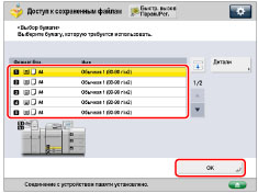 При нажатии клавиши [Детали] отображаются подробные сведения о выбранной бумаге.