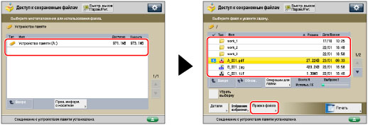 → [Доступ к сохраненным файлам] → [Устройство памяти].