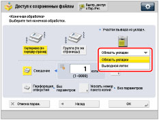 Вариант [Указать номер пакета копий] можно задать только в том случае, если выбрать [Область укладки] в пункте <Участок вывода из укладч.>.