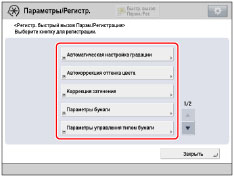 Выберите параметры меню Параметры/Регистрация, которые требуется зарегистрировать, → нажмите клавишу [OK].
