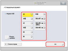 → введите правильные значения.Для выбора зарегистрированного формата бумаги, присвоенного какой-либо кнопке формата ([S1] – [S5]), необходимо заранее присвоить нестандартный формат бумаги данной кнопке формата. Указания по сохранению нестандартных форматов бумаги приведены в разделе "Регистрация/правка/удаление пользовательских форматов бумаги."