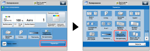 Если оригинал представляет собой OHP-пленку / прозрачную пленку, выберите тип оригинала → настройте экспонирование на наиболее подходящий уровень.