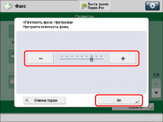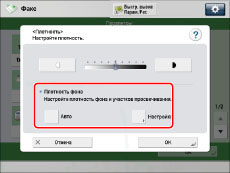 Если выполняется настройка плотности фона с помощью клавиши [Настройка] для параметра <Плотность фона>, настройка [Авто] отменяется. Аналогично, при нажатии клавиши [Авто] во время ручной настройки в пункте [Настройка] выполненные настройки отменяются. Аппарат автоматически настраивает плотность в соответствии с фоном.