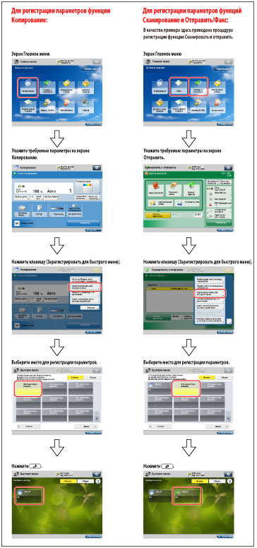 Указания по регистрации персональной кнопки/общей кнопки на примере использования функции Сканировать и отправить см. в разделе "Регистрация персональной/общей кнопки."