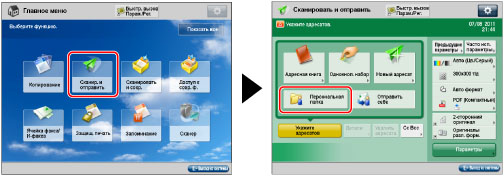 в правом верхнем углу экрана → [Регистр./Правка сведений для каждого пользователя] → [Персональная папка].Администратор может ограничить передачу файлов только личной папкой обычного пользователя. (См. "Ограничение адресата для передачи файлов.")