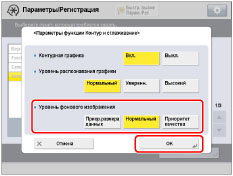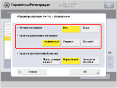 При увеличении значения параметра <Уровень распознавания графики> размер данных также возрастает. Рекомендуется сначала использовать значение [Нормальн.], а если результаты неудовлетворительны, попробовать увеличить уровень распознавания до [Умеренн.] или [Высок.].