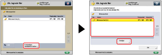 Tryck på [Kontrollera mediainformation] → välj önskad minnesenhet → tryck på [Detaljer].