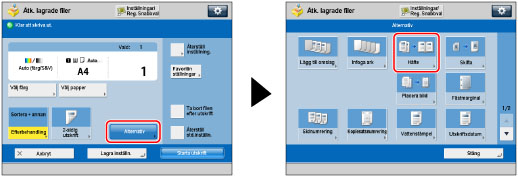 Arbetssätten Sadelhäfta och Uppdelat häfte kan anges bara om Häftesefterbehandlare-W1 PRO Booklet Finisher-T1 har monterats.