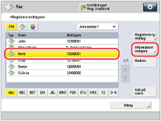 Markera den mottagare som du vill ändra → tryck på [Detaljer/redigera].