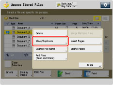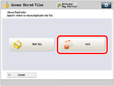 You cannot move or duplicate files in the Fax/I-Fax Inbox or memory media to the Hold Queue.