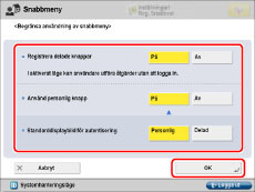 Om du anger <Registrera delade knappar> till [På] kan allmänna användare och obehöriga användare registrera, redigera eller ta bort den delade knappen eller ändra storleken på knappar och bakgrundsbilden.