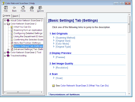 Viewing the Color Network ScanGear 2 Help
