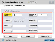 Efter att ha tryckt på [Generera nyckel], kan du inte använda någon av nycklarna förrän ett nyckelpar har genererats och registrerats.