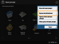 Podeu crear un botó de drecera per a les funcions a la pantalla <Menú principal>. Utilitzeu aquest botó per accedir a una funció diferent sense tornar a la pantalla <Menú principal>. Per crear una drecera, inicieu sessió amb privilegis d'administrador.