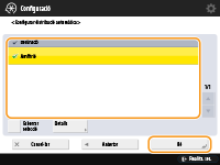 Restauració de la informació de dispositiu anteriorPodeu portar a terme operacions a l'equip client per restaurar la informació de dispositiu existent abans de portar a terme l'actualització. No obstant, només podeu restaurar la informació existent immediatament anterior a l'actualització. La informació més antiga no es pot restaurar. També heu de tenir en compte que pot ser que les opcions per a <Opcions env. URL> a <Establir/Desar bústies de fax confidencial> (<Establir/Desar bústies de fax confidencial>) s'esborrin si les dades corresponents a <Valor de Configuració> i <Llibreta d'adreces> no es restauren alhora. <Gestió del dispositiu>