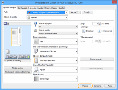 Especifiqueu les opcions d'impressió segons calgui i feu clic a [D'acord].