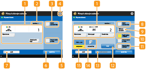 Zde se zobrazuje stav nastavení, např. velikost papíru, na který se má tisknout, a počet výtisků. V zájmu správného tisku dokumentů nastavení vždy zkontrolujte. Chcete-li nastavení změnit, stiskněte tlačítko pod zobrazením. Chcete-li změnit počet výtisků, zadejte počet s pomocí číselných tlačítek.