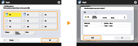 Jos edellä mainittu viesti näytetään, kun tallennetaan <Suosikkiasetukset> kohdassa <Skannaa ja lähetä>, suorita seuraavat toimet. Jos haluat hakea suosikkiasetukset syöttämättä salasanaa, valitse <Kyllä>, niin salasanatiedot säilytetään.