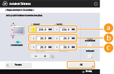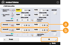 valitse <OK>.Käyttämällä seuraavia kolmea numeroarvoa laite suorittaa automaattisen säädön siten, että vääristynyt tulostusalue saattaa korjaantua.
