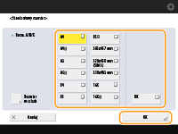 przycisk, do którego została przypisana koperta jako typ papieru <OK>. Rejestrowanie najczęściej używanego formatu i typu papieru dla tacy wielofunkcyjnej |