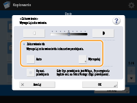 Jeżeli wyświetlany jest ekran wyboru rozmiaru oryginałuJeżeli dla opcji <Wybierz Papier> ustawiono <Aut.>, może zostać wyświetlony ekran wyboru rozmiaru oryginału. Jest on wyświetlany, ponieważ rozmiar oryginału nie może zostać zweryfikowany i papieru nie można wybrać automatycznie w przypadku, gdy chcesz skanować oryginały niezwykle przezroczyste, oryginały, dla których zastosowano niezwykle ciemne kolory podstawowe lub też oryginały o niewielkim formacie. Wybierz rozmiar oryginału lub też rozmiar najbliższy oryginałowi.