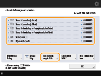 <Spr. Konfigur. Urządzenia>, można sprawdzić zainstalowane w urządzeniu wyposażenie opcjonalne oraz wersję układu zabezpieczeń dotyczącego szyfrowania danych na dysku twardym.Szczegółowych informacji na temat stanu liczników może udzielić autoryzowany sprzedawca produktów firmy Canon.