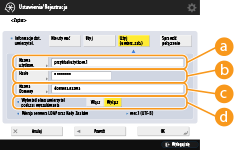 Przykład: Jeżeli nazwa domeny Windows to „przykład” i nazwa użytkownika Windows to „użytkownik1”, wprowadź „przykład\użytkownik1”. Jeżeli używany jest system Lotus Notes Domino, należy wprowadzić nazwę identyfikującą użytkownika uwierzytelnionego (dn), na przykład: cn=użytkownik1,ou=zespół1,ou=działsprzedaży,o=canon.