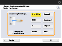 Se tiver alterado a colocação dos envelopes, carregue em <Alimentação pela extremidade curta> ou <Alimentação pela extremidade longa> e selecione o tipo de envelope.