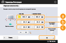 нажмите <OK>.На основании следующих трех числовых значений устройство автоматически выполняет настройку таким образом, чтобы область печати и бумага стали параллельными.
