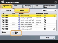 (Inställningar/Registrering) <Hanteringsinställningar> <Enhetshantering> <Begränsa åtkomst till andra användarjobb> är inställt på <På> kommer jobb som inte tillhör den inloggade användaren att visas som "***" och kan inte utföras. Om du loggar in med administratörsbehörighet visas jobben för alla användare. |