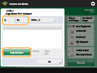 <Orig. innehållsriktning> välj <Övre kant mot bortre kant> eller <Övre kant mot sidkant> enligt originalets orientering tryck på <OK>.Ange flera mottagare inklusive faxGenom att sätta <Aktivera fax i scanningsoch sändfunktion> till <På> kan du ange faxmottagare på skärmbilden med grundläggande kopieringsfunktioner (<Visa faxfunktion>). Den här inställningen är användbar för ange flera mottagare inklusive fax, t.ex. när du sparar en kopia av skickade fax i en filserver.