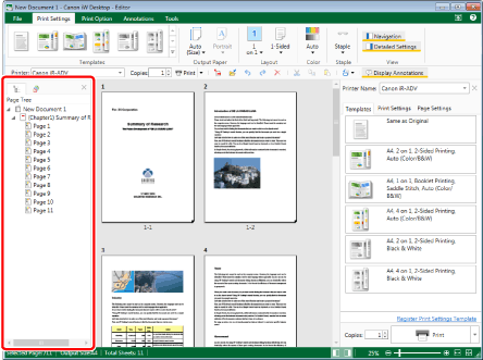 [Page Tree] tab: Displays the page tree of the document. You can expand and collapse the chapters displayed on the tab.