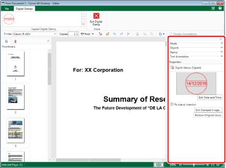 [Signature List] tab: Displays a list of the signatures of the digital stamps added to the document.