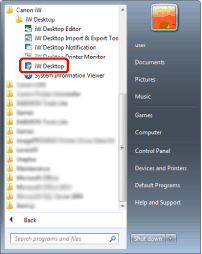For Windows 10, select the [Start] menu > [All apps] > [Canon iW] > [iW Desktop]. Desktop Browser starts.