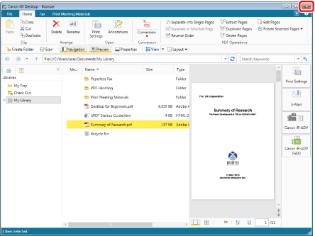 When you started Desktop Browser from a Desktop shortcut of a document, a corresponding application and Desktop Browser start up and the document is displayed on the corresponding application.