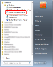 For Windows 10, select the [Start] menu > [All apps] > [Canon iW] > [iW Desktop Notification]. Notification starts.