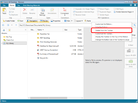 To return the buttons displayed on the toolbar to the default settings, click [Restore Defaults].