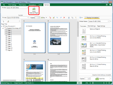 (Fax) on the ribbon, and select [Send Selected Pages].