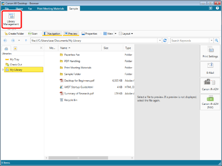 An Advanced Box of an imageRUNNER ADVANCE device is a storage location for sharing information. An Advanced Box can also be browsed by network computers. You can enlarge the availability of document management and e-documents by linking an Advanced Box with Desktop.