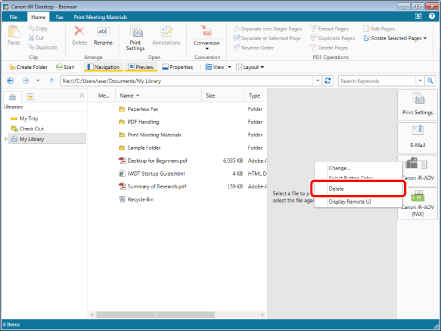 (printer output button) to delete, and select [Delete].