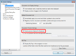 The Desktop Browser preview function and the Windows Explorer preview function are the same. Enabling the Desktop Browser setting to preview Office documents is unrelated to the [Show preview handlers in preview pane] setting in the Windows Explorer folder options. Previewing is performed separately for each file type, and, although uncommon, unique file types may not be able to be previewed. In this case, confirm whether you can preview the file type in Windows Explorer.